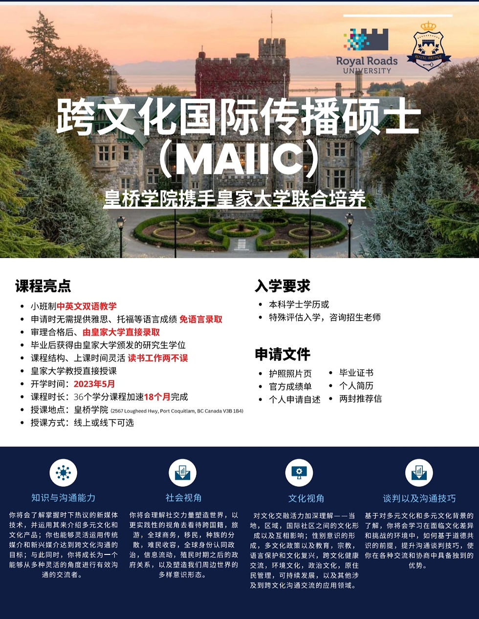 最近,加拿大V3教育城合作伙伴加拿大皇家桥学院联合推介加拿大皇家大学研究生项目,2023年5月开学了,喜欢读加拿大研究生的朋友欢迎来电778.776.9762 或 778.308.9755 或电邮 office@veuniversity.online 查询。